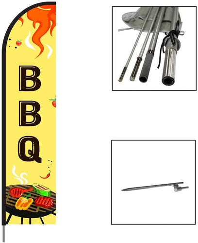 BBQ - Barbeque Feather Flag Banner Signs for Restaurant, Complete Pole Kit for Outdoor Advertising S #BBQY-EVSS15 Min 1