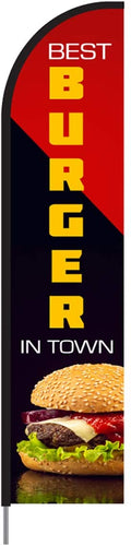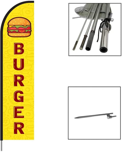 Burger Feather Flag Banner Signs for Restaurant, Complete Pole Kit for Store Display, 15ft - Design #BGRD1-EVSS15 Min 1