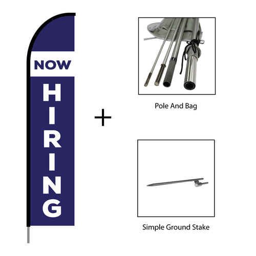 Now Hiring(Blue) Flag Kit 15' Feet Feather Flag Sign Outdoor Banner #EVO-15-NOWHIRING-BLUE Min 1
