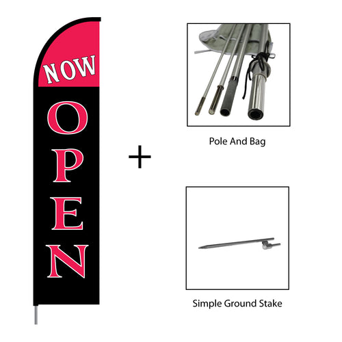 Now Open(Crimson) Flag Kit 15' Feet Feather Flag Sign Outdoor Banner #EVO-15-NOWOPEN-CRIMSON Min 1