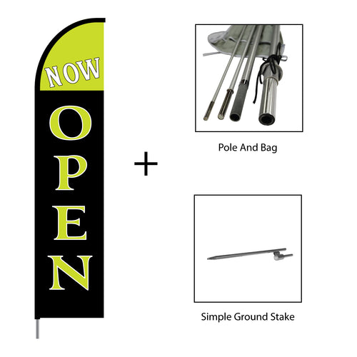 Now Open(Green) Flag Kit 15' Feet Feather Flag Sign Outdoor Banner #EVO-15-NOWOPEN-GREEN Min 1