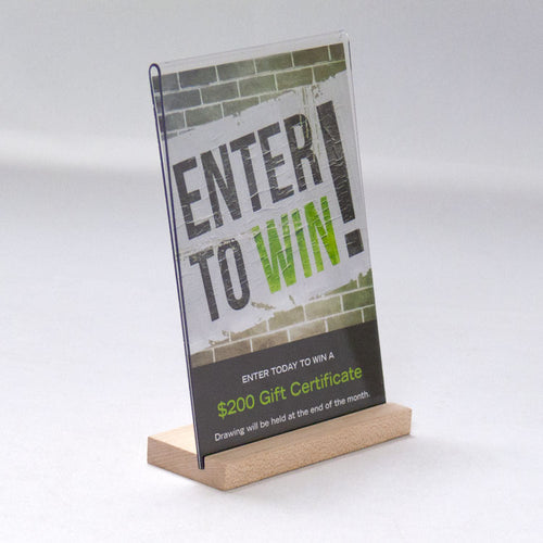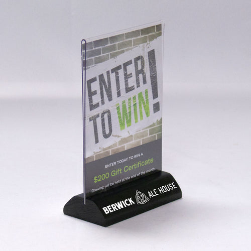 Slant Back Table Tent with Wood Base - 5w x 7h #DW601 Min 1